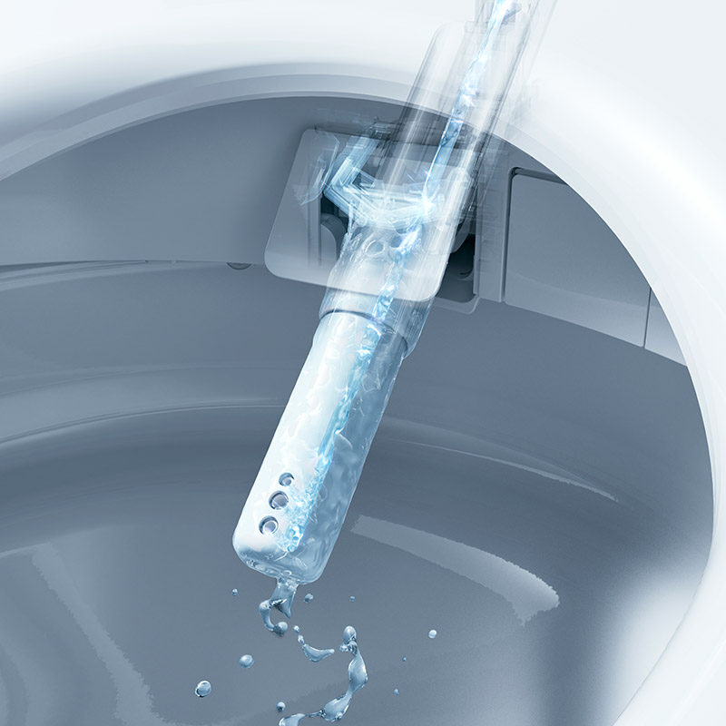 Mittels Fernbedienung können Sie die Warmwasserdüse ausfahren und steuern.  Sie regeln ganz nach Ihren persönlichen Bedürfnissen, wie die Reinigung mit warmem Wasser erfolgen soll. Sie bestimmen die Strahlart, den Wasserdruck und die Temperatur.